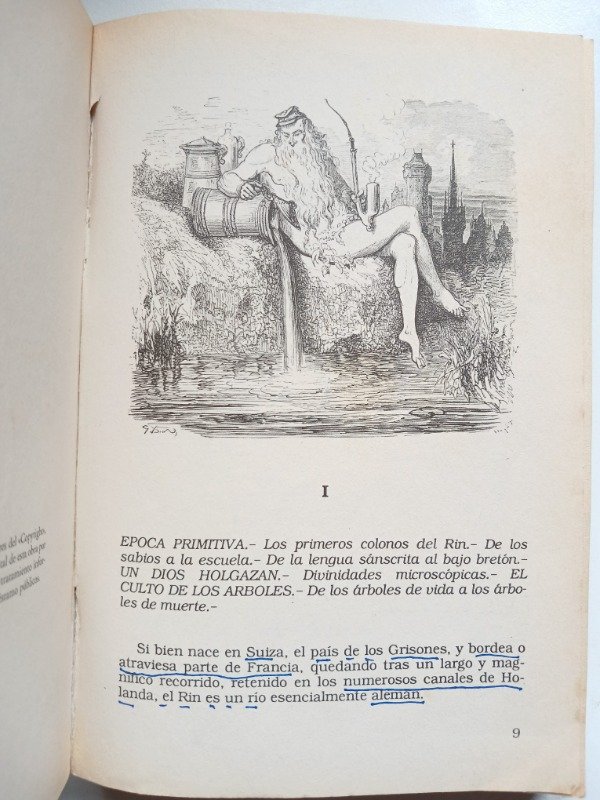 Si bien nace en Suiza, bordea y atraviesa Francia, el Rin es un río esencialmente alemán. A sus orillas los pueblos germánicos instalaron sus tiendas y abrevaron sus rebaños, libraron sus batallas y desarrollaron una rica mitología, quizá dependiente o influida por la hindú, pero llena de fuerza y poderío.