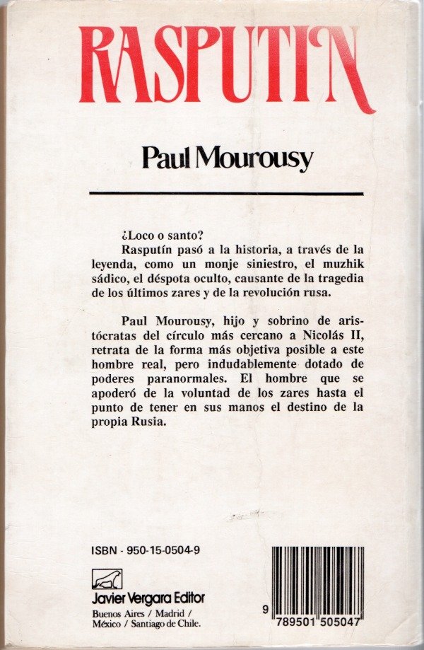 Rasputin, de Paul Mourousy, es una biografía histórica que ofrece una visión detallada y más objetiva sobre Grigori Rasputin, la figura controversial de la Rusia imperial de principios del siglo XX.