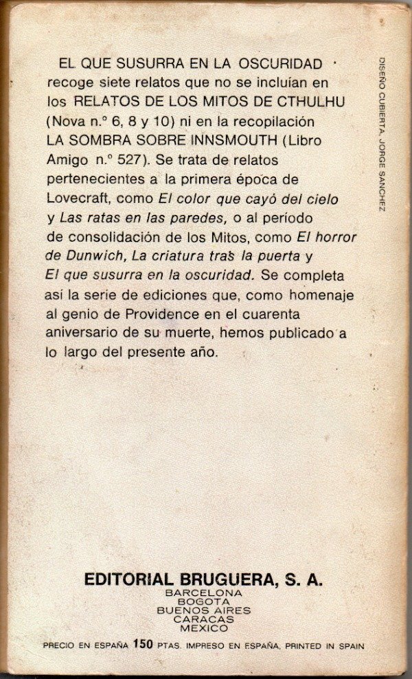 Incluye ademas otros relatos de Lovecraft como El horro de Dunwich, Las Ratas en las paredes El color que cayó del cielo y otros.