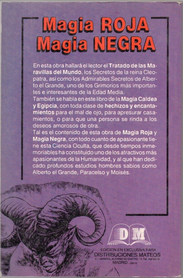 Tal es el contenido de esta obra de Magia Roja y Magia Negra, con todo cuanto de apasionante tiene esta Ciencia Oculta, que desde tiempos inmemoriables ha constituido uno de los atractivos más apasionantes de la Humanidad, y al que han dedi-cado profundos estudios hombres sabios como Alberto el Grande, Paracelso y Moisés.
